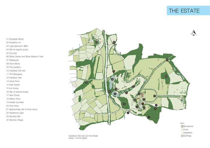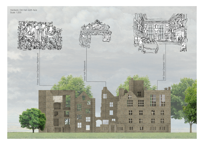 In this project, I was proposed to explore and investigate one of the most innovative houses of the Tudor period, Hardwick Old Hall. I had to analyse the relationships between the ruins of the standing building and its surroundings.