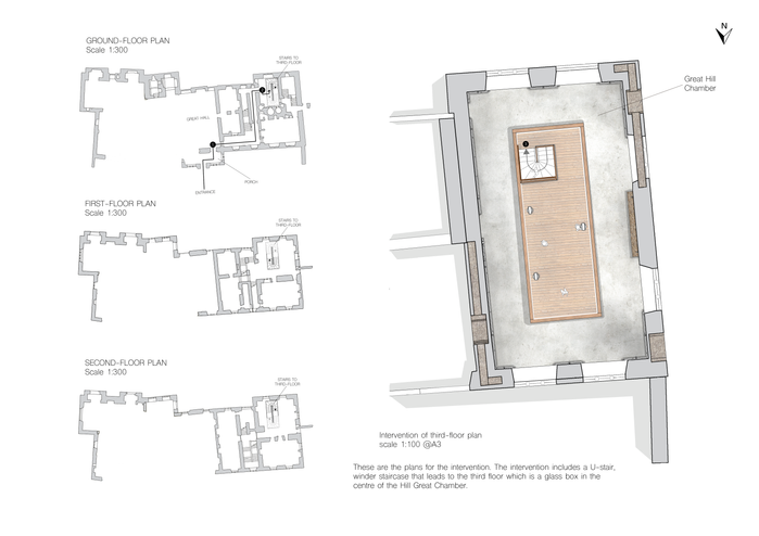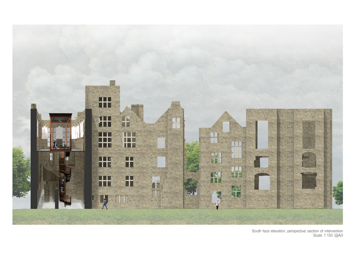 I needed to develop an understanding of contemporary culture and the conservation of ruins. Working with a building that had lost its natural defences such as roof, windows, plaster, etc, I had to design an intervention which examines architectural elements of Hardwick so that visitors can observe the intricate stonework contained at Old Hall.